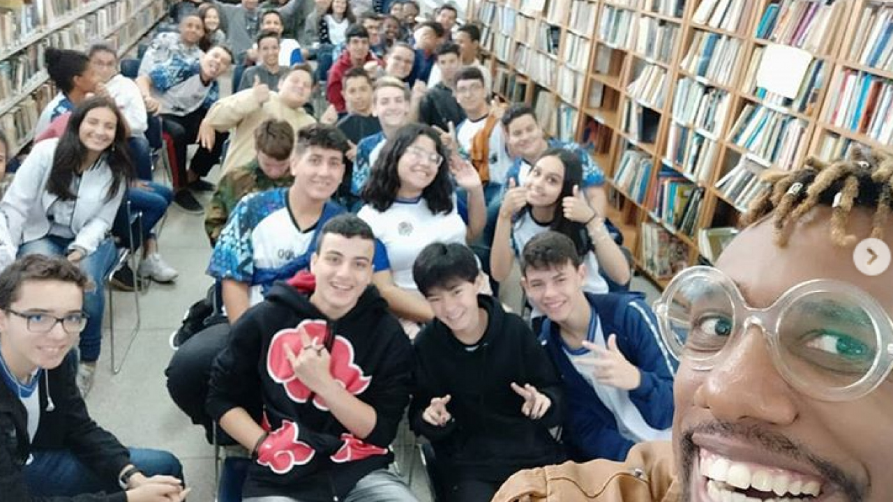Escritor best-seller, Jim Anotsu, além de falar de Literatura Fantástica, encheu de ritmo as bibliotecas por onde passou. O rap cantado num inglês bem falado, por quem é formado em literatura inglesa e ama Shakespeare, contagiou a todos.