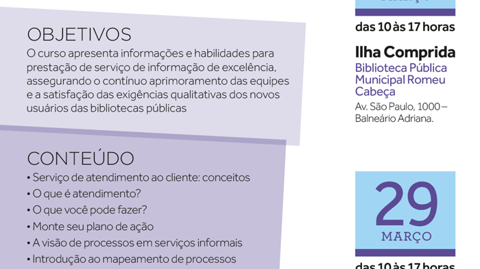 Como está o atendimento na sua biblioteca? No curso Serviços de informação ao cliente: Do atendimento presencial ao virtual ministrado pela Profª Adriana Maria de Souza você poderá aprofu...